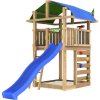 Resan upp i tornet kan göras via den robusta stegen eller den utmanande klätterväggen Rock. Den medföljande Climb-modulen ger extra roligt med både en klättervägg och ett klätternät för att stärka barnens motorik och balans. Den 265 cm långa blå rutschkanan ger en rolig nedstigning och under varma dagar kan den anslutas till en trädgårdsslang och användas som vattenrutschkana. Under tornet finns en stor sandlåda där barnen kan bygga sandslott och leka i skuggan.