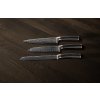 Setet ger dig rätt verktyg för varje uppgift. Kockkniven klarar större råvaror och tranchering, santokukniven säkerställer precision vid grönsaker och fisk, medan brödkniven skär rent genom krispiga ytor. De två allknivarna är idealiska för mindre uppgifter och finare arbete.