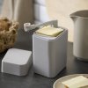 Rosti Classic Ostlåda i svart är den perfekta lösningen för dig som vill ha ett praktiskt och hygieniskt sätt att förvara och servera ost. Lådan är utrustad med en integrerad ostskärare, så att du kan skära skivor utan att röra vid osten. För varje skiva du skär, lyfts botten automatiskt, så nästa skiva är redo – perfekt för både köket och lunchbordet.