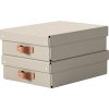Den låga höjden på 10 cm gör dessa lådor utmärkta för platser med begränsat utrymme. Använd dem för A4-dokument, bärbara datorer, tillbehör, leksaker eller som dold förvaring i standardlådor. De kan staplas och flyttas lätt, tack vare det praktiska handtaget.