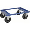 Den smartaste lösningen för lagret. Helsvetsad vagn för transport av EUR-pallar. Modellen har 2 fasta och 2 svängbara hjul av massivgummi. Vagnen klarar enkelt en belastning på upp till 800 kg. Finns för transport av antingen hel- eller halvpallar.